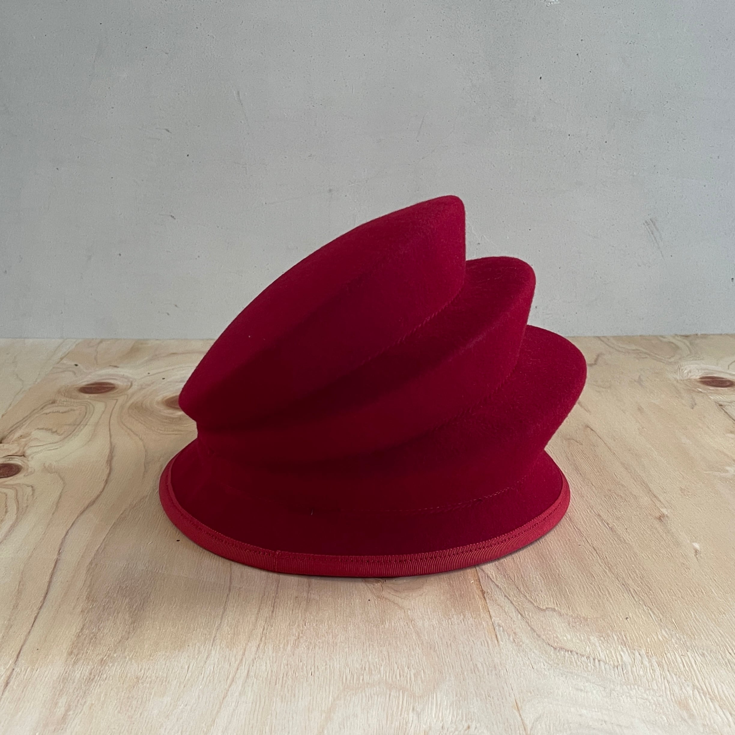 シドニーのオペラハウスをモチーフに、オリジナルの木型で制作したハット。 左右前後、見る角度によって違った表情が楽しめます。 レッド別注商品になります。 素材:ウール100% サイズ:頭周り 58cm(-2cm程度調整可能)